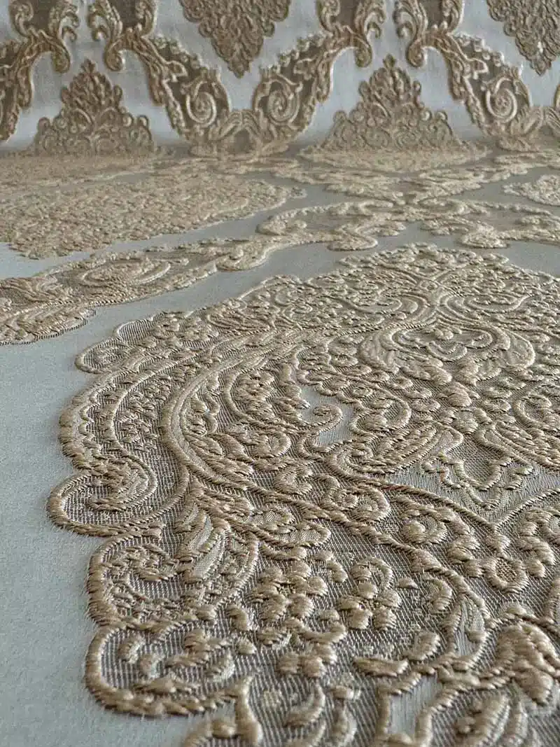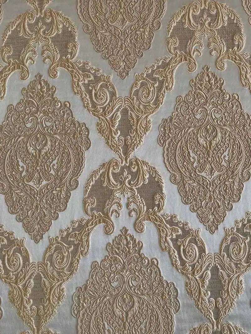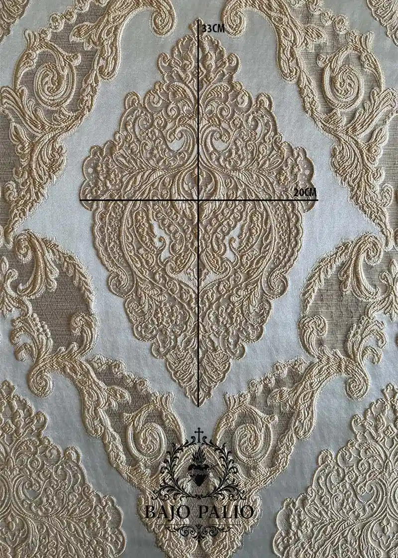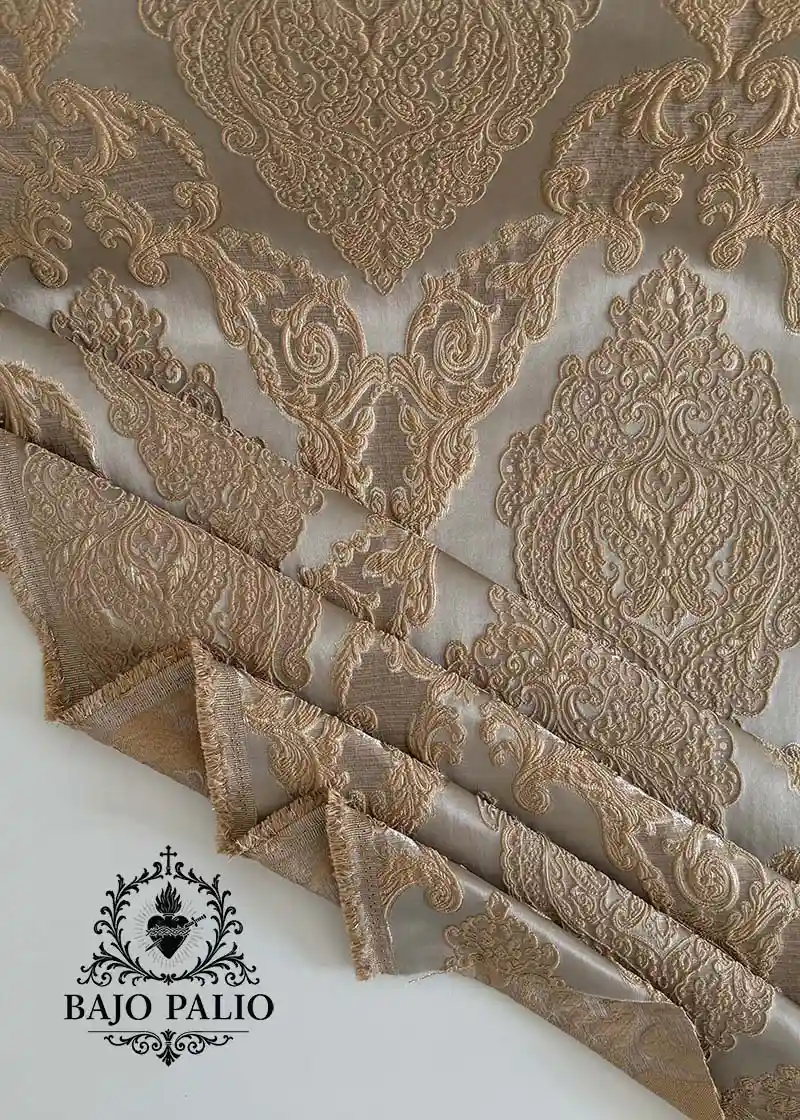 Este brocado combina tradición y calidad en un tejido ornamental.