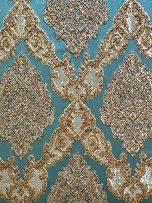 Nuestro brocado azul turquesa Aurora, es elegancia barroca disponible en cuatro tonalidades