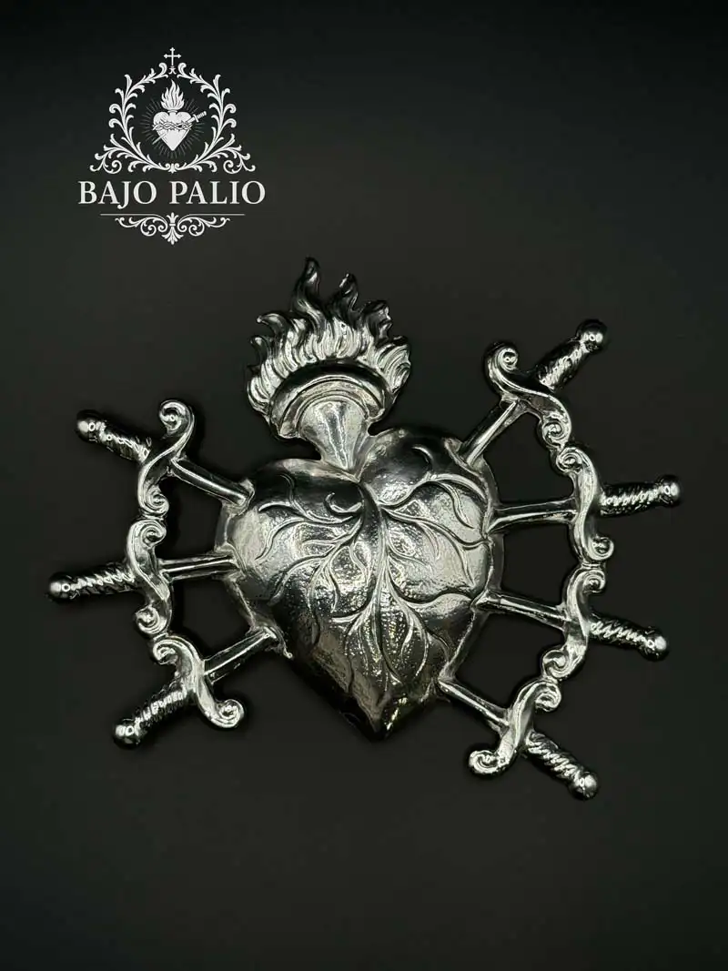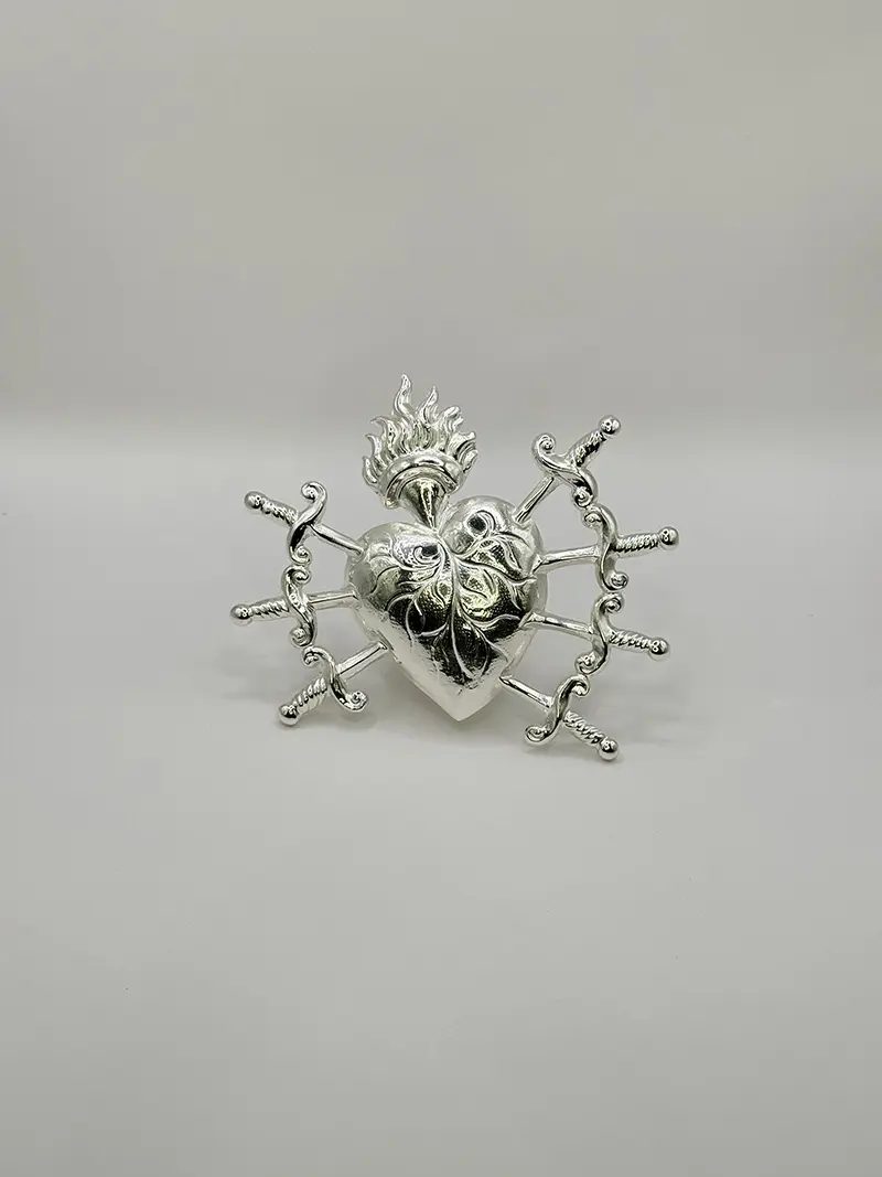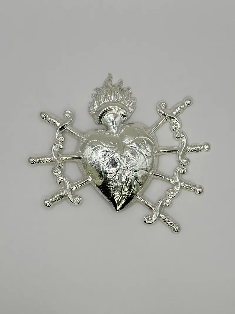 CORAZÓN PUÑALES GRANDE PLATEADO
