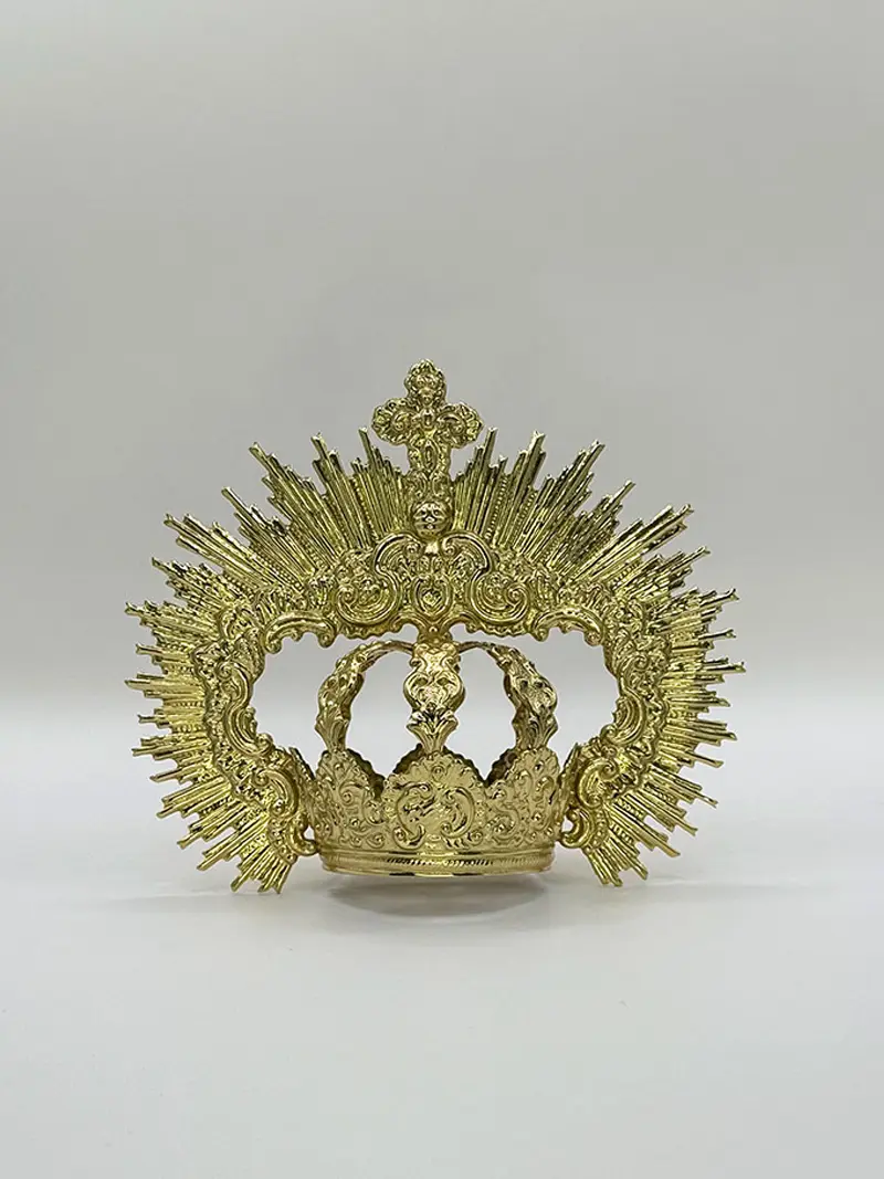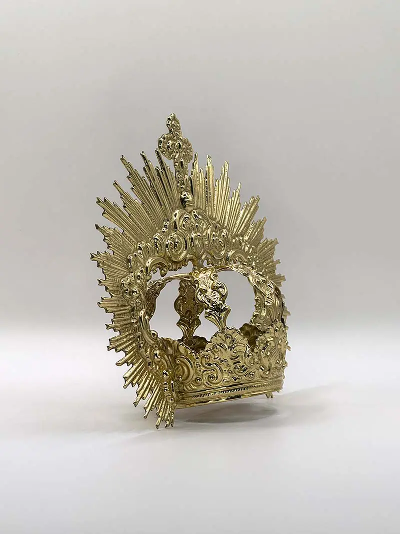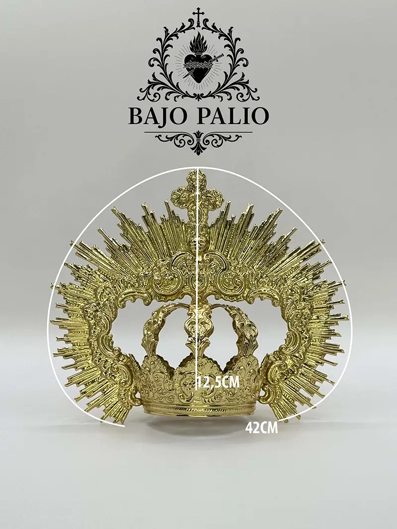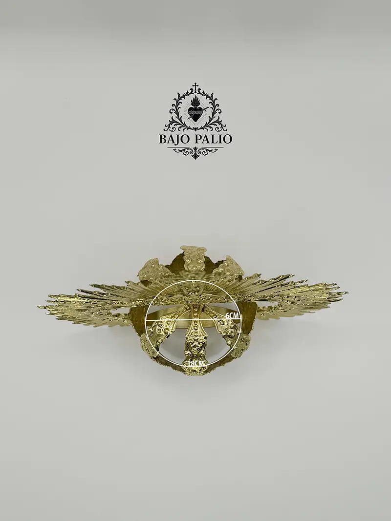 Estructura con imperiales y piezas de inspiración barroca, lleva seis imperiales decorados con volutas. Las ráfagas que van del canasto hasta el centro de los imperiales, porta una cruz central repujada con volutas y hojarascas.
