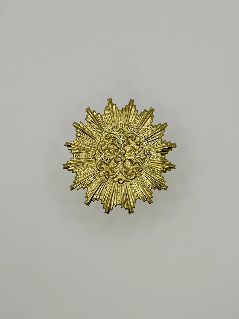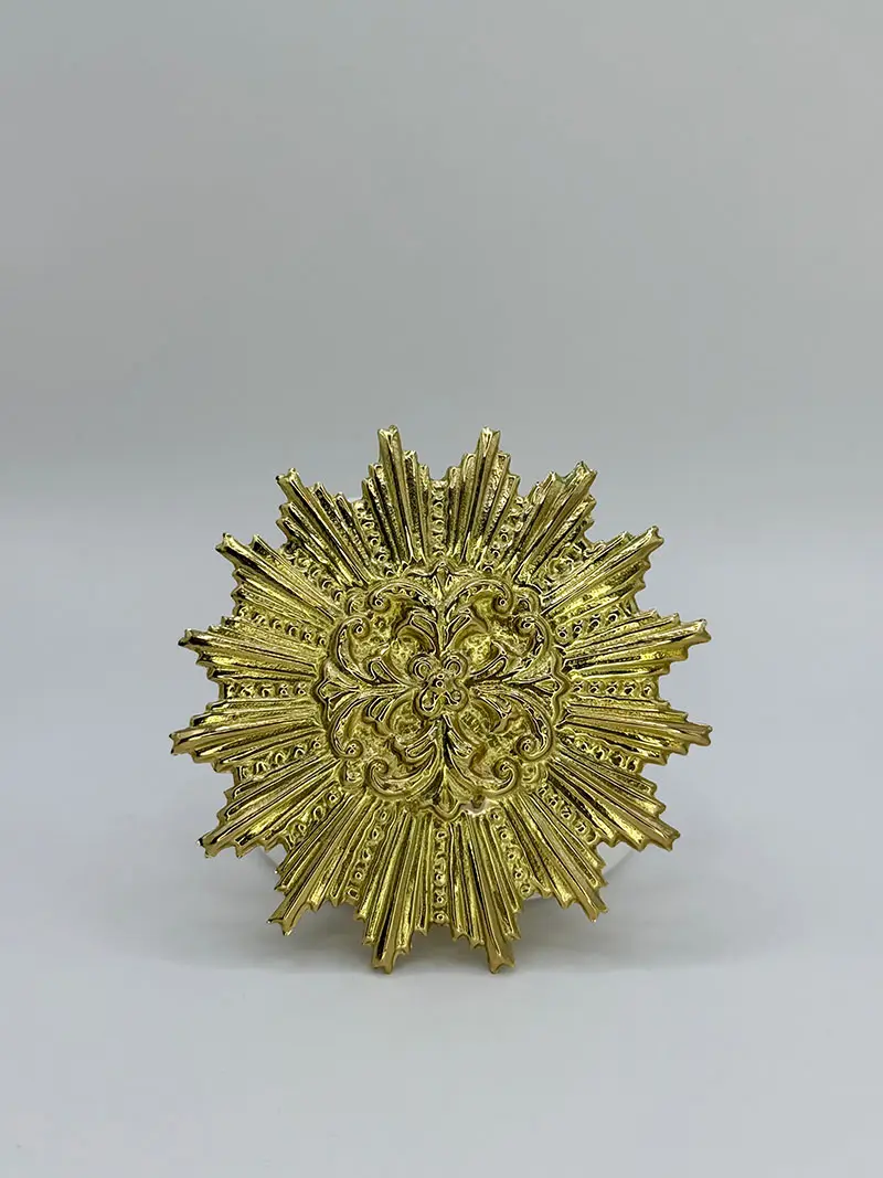 Nimbo de ráfagas y florón central: un diseño que en su centro está ornamentado con una flor, la cual irradia rayos rectos en disposición radial rodeando la ornamentación central.