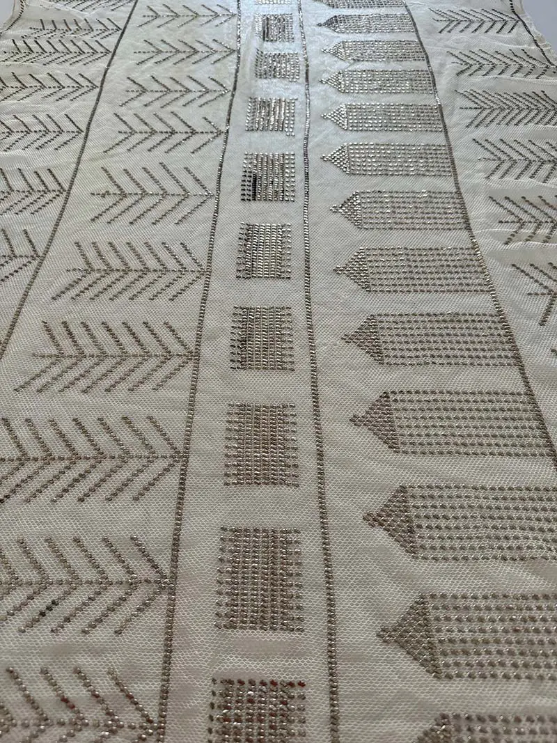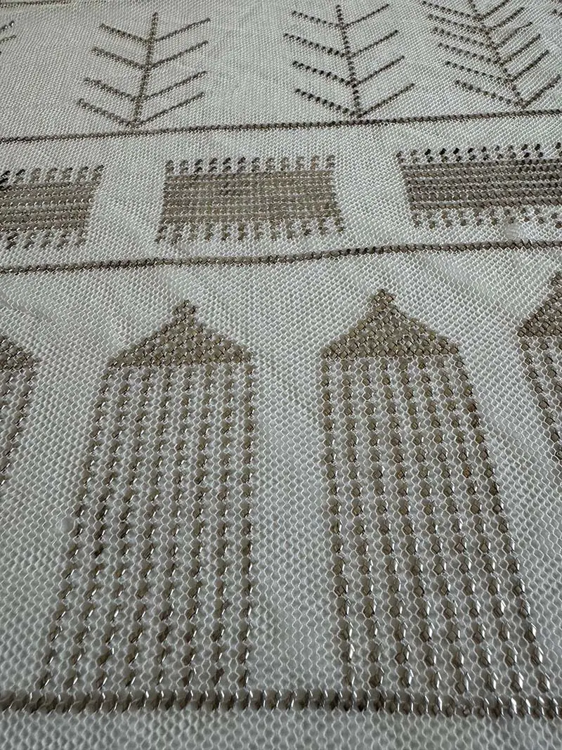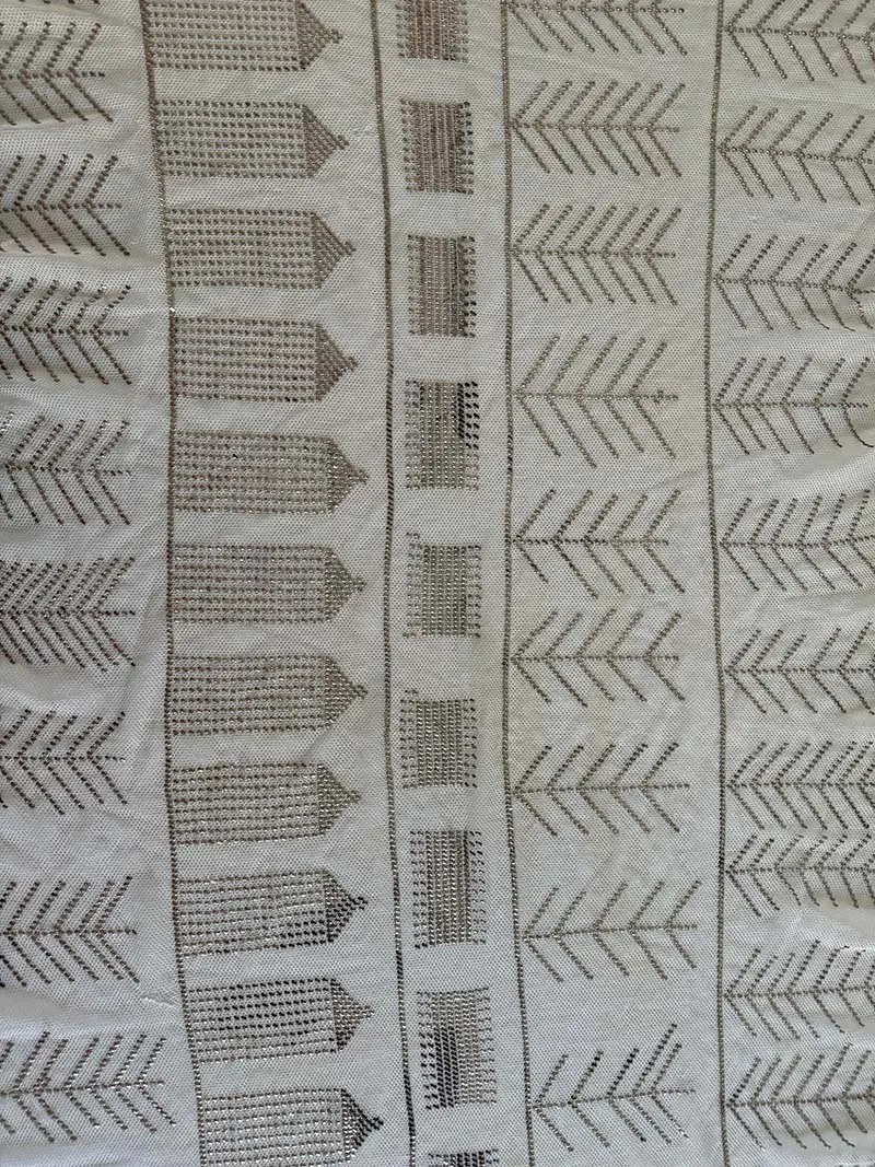 El brillo de las hojillas de plata hace que cada pliegue del paño refleje la luz.