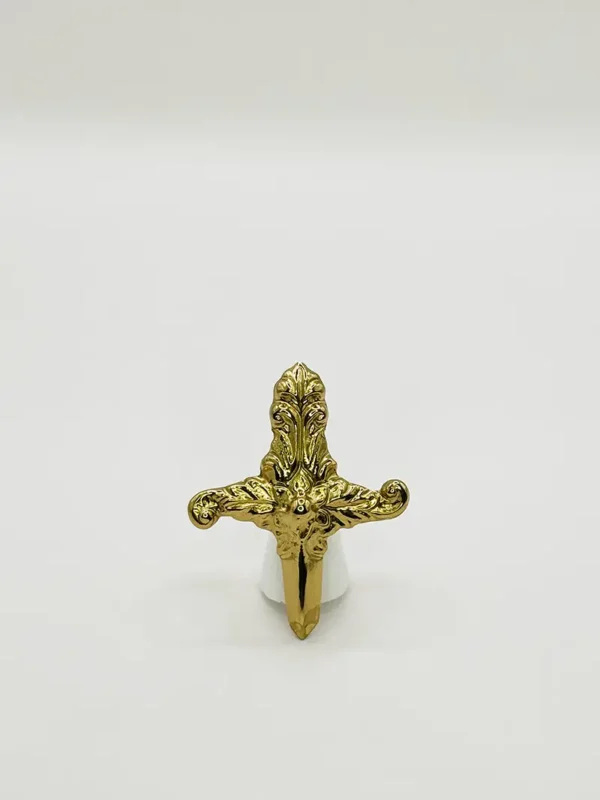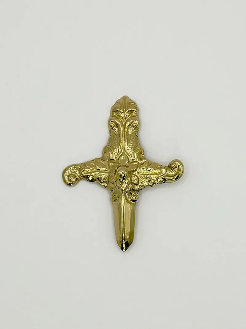 Diseño con hojas de acanto de estilo Barroco. La guarda (parte transversal que protege) termina en espiral que estiliza toda la pieza.