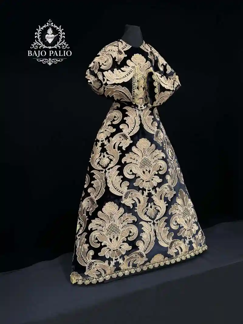 Un conjunto que da fuerza y carácter sin perder la elegancia del bordado dorado.