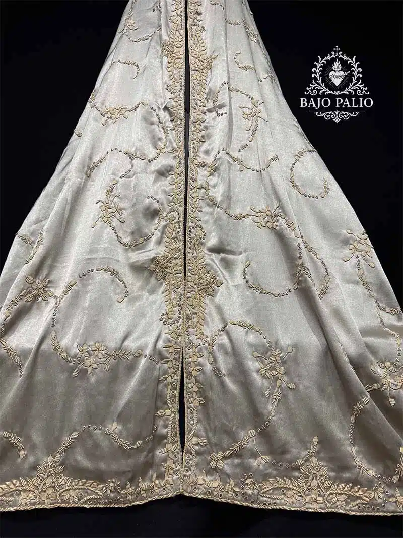 Un espectacular bordado para una seda de gran calidad, una pieza única.
