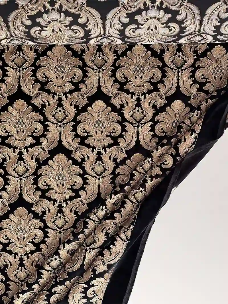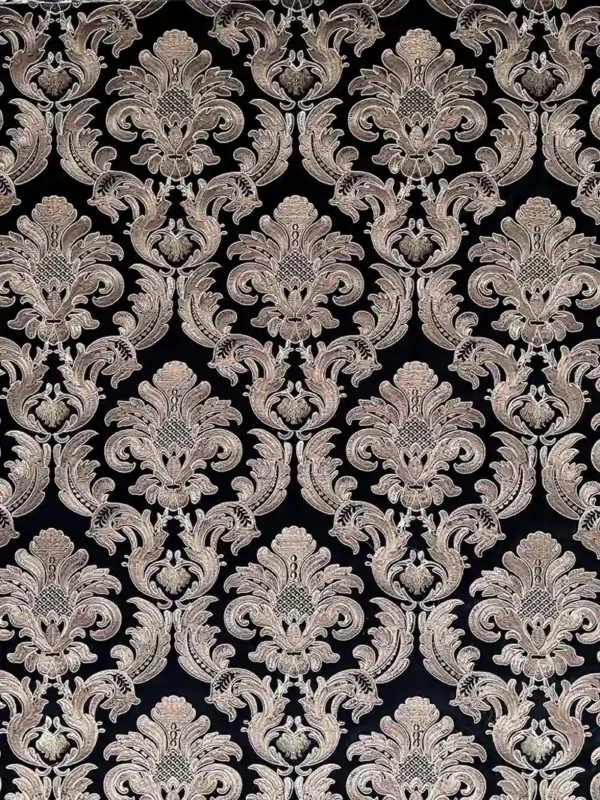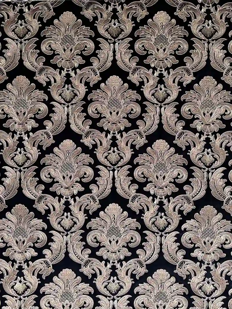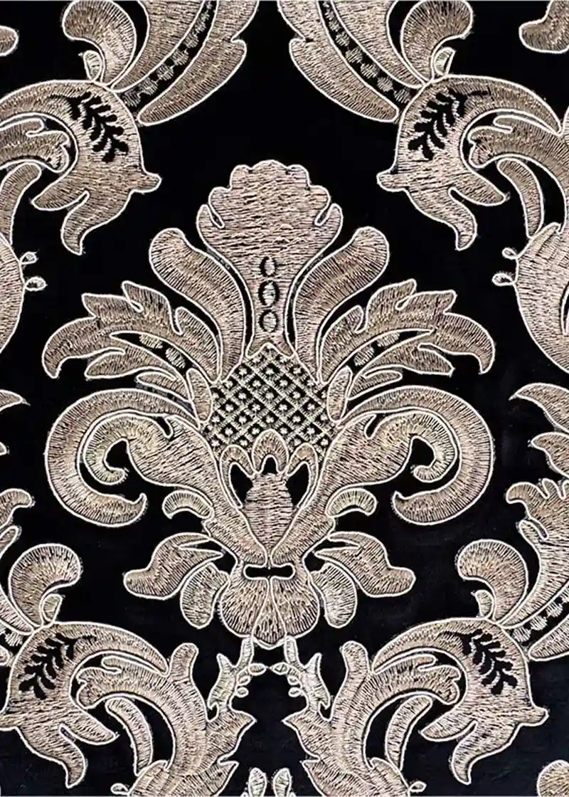 Un terciopelo bordado con empaque y riqueza ornamental.